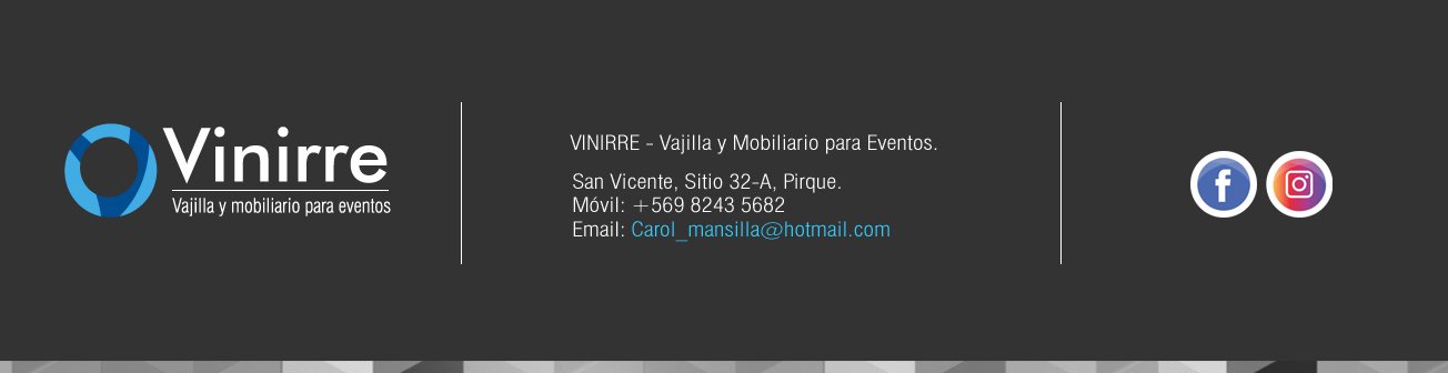 En Vinirre contamos con un amplio surtido de vajilla para que su evento se vea lo mas formal y elegante para dar un prestigio a su celebración.